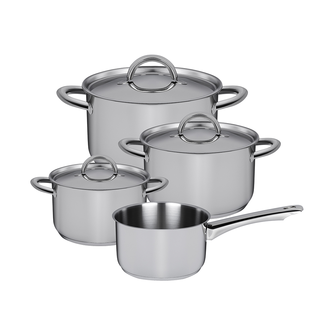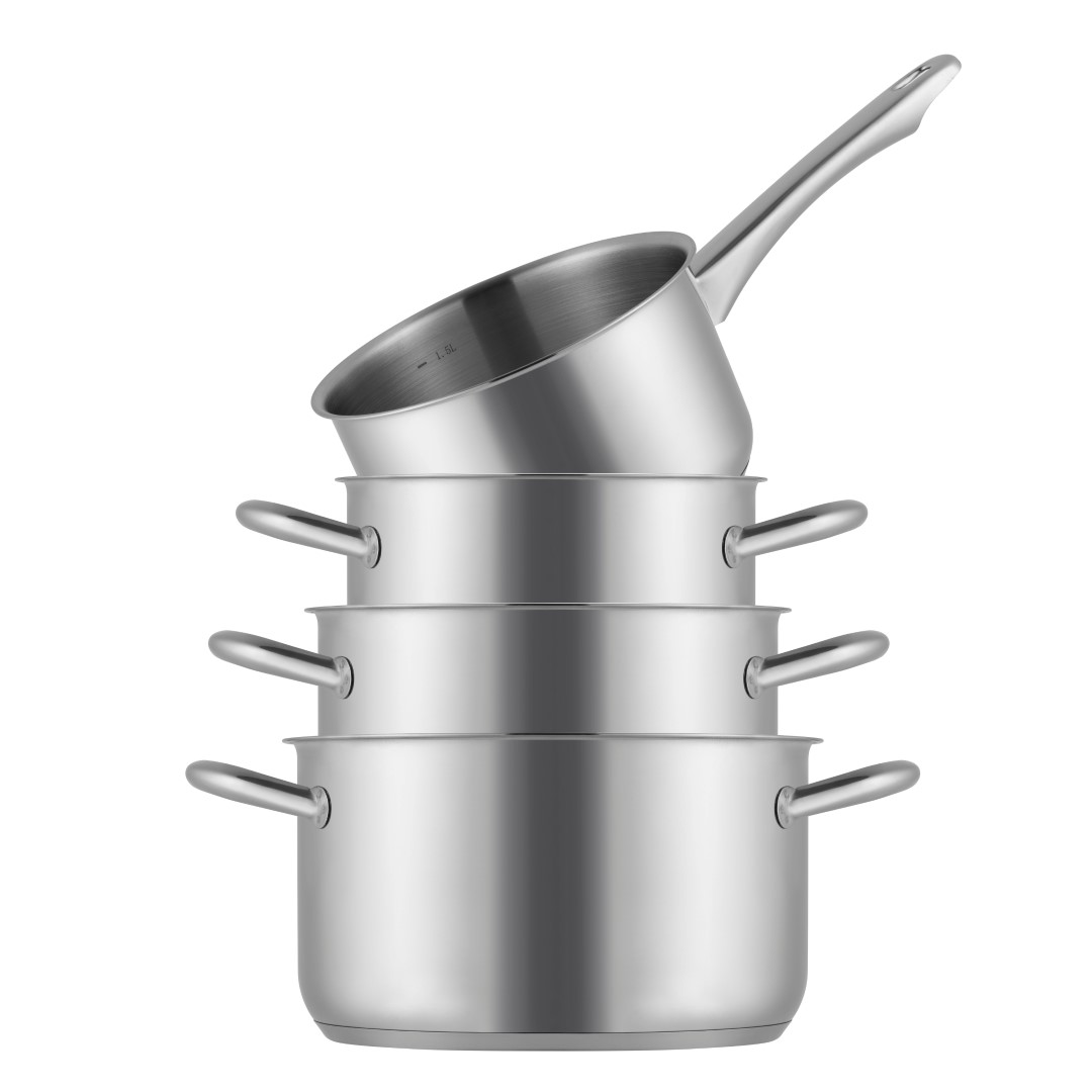 Met de Blizz pannenset heb je in één keer de meest gebruikte pannen in huis. De set heeft een uniforme, zilverkleurige uitstraling en bestaat uit drie kookpannen met deksel en een steelpan. Ideaal voor het koken van groenten, aardappelen, pasta of het opwarmen van een saus. Bekijk ook onze andere pannensets voor meer opties.