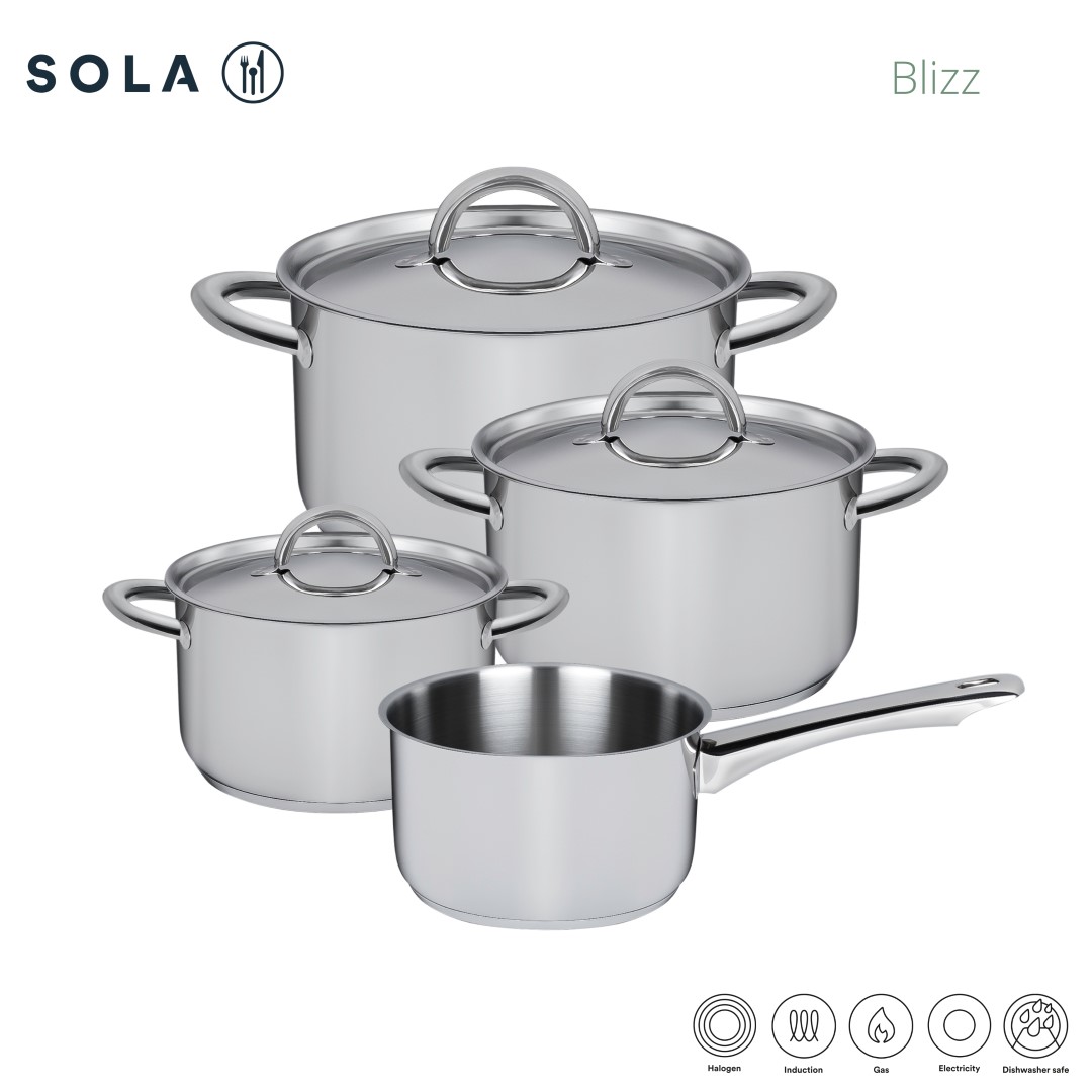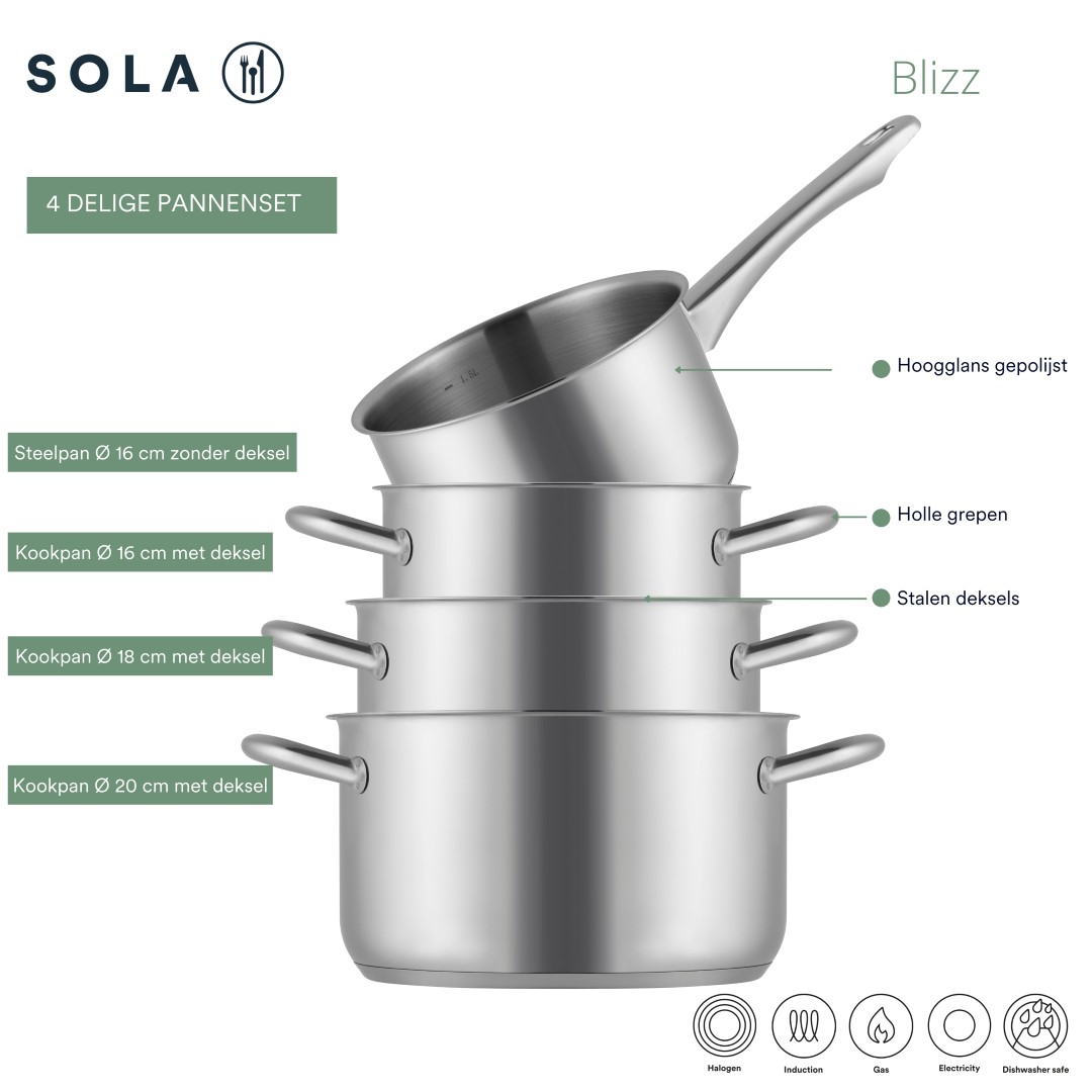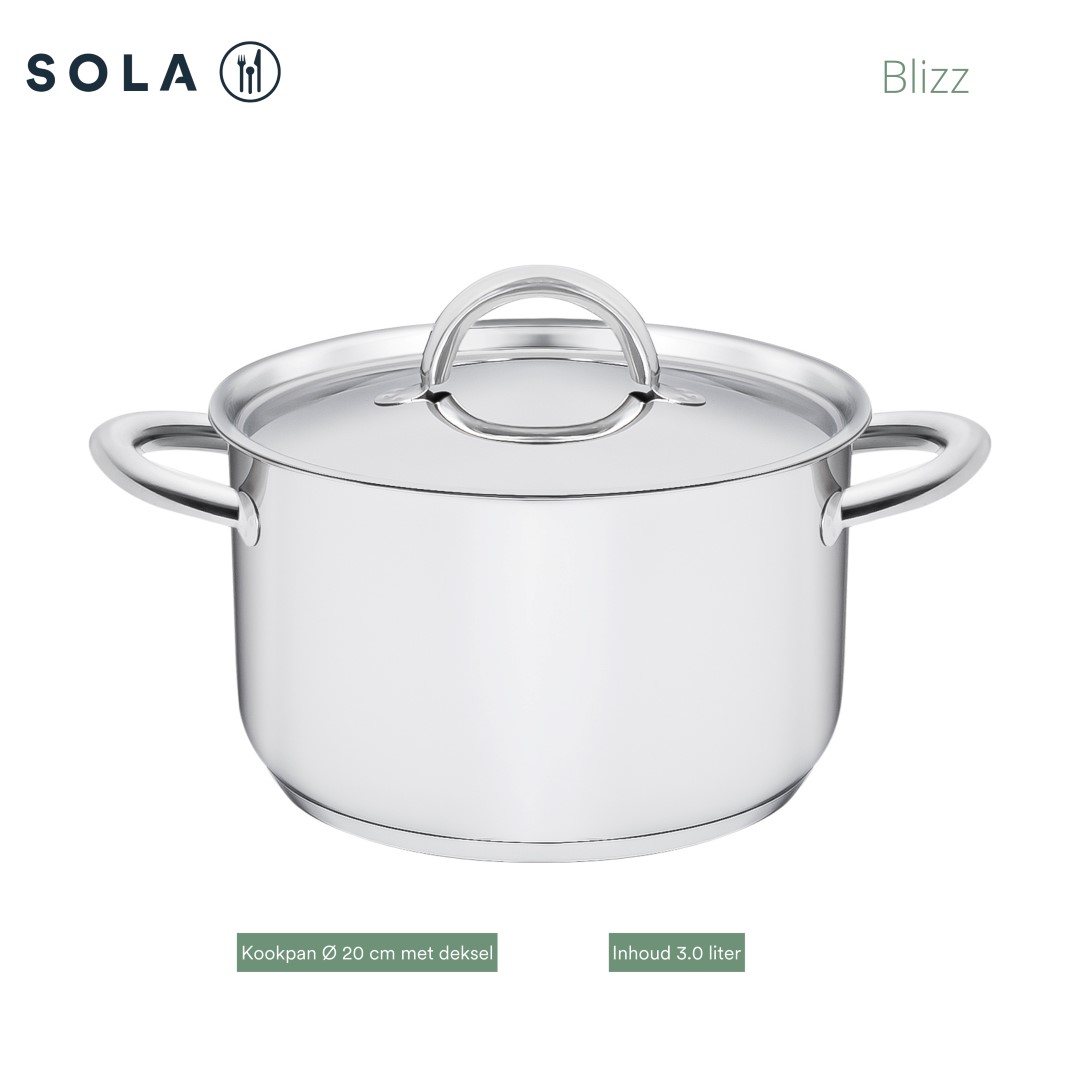 De Blizz pannenset is een solide keuze voor wie op zoek is naar functionele kwaliteit. Sola staat achter dit product en biedt daarom 10 jaar garantie op materiaal- en fabricagefouten. Zo ben je verzekerd van een betrouwbare set waar je jarenlang op kunt rekenen. Bent u op zoek naar meer pannen voor inductie? Ontdek dan ons volledige assortiment.