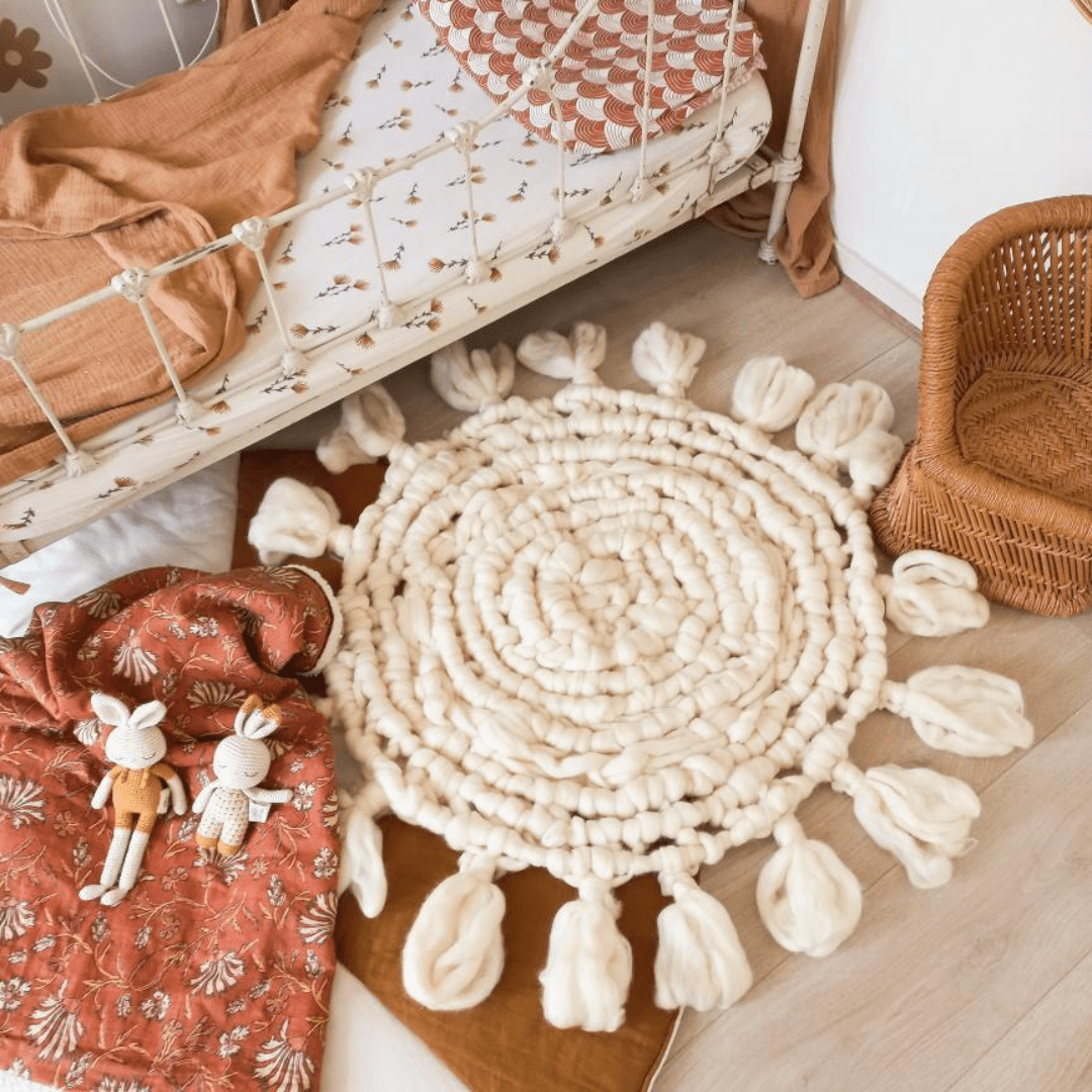 - 1.5 kilo lontwol voor een rond kleed van 70 cm doorsnee.