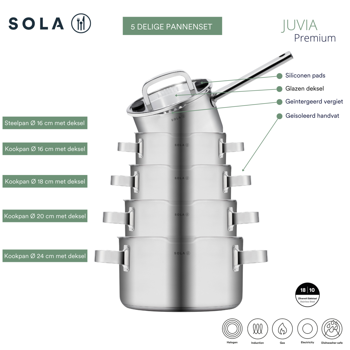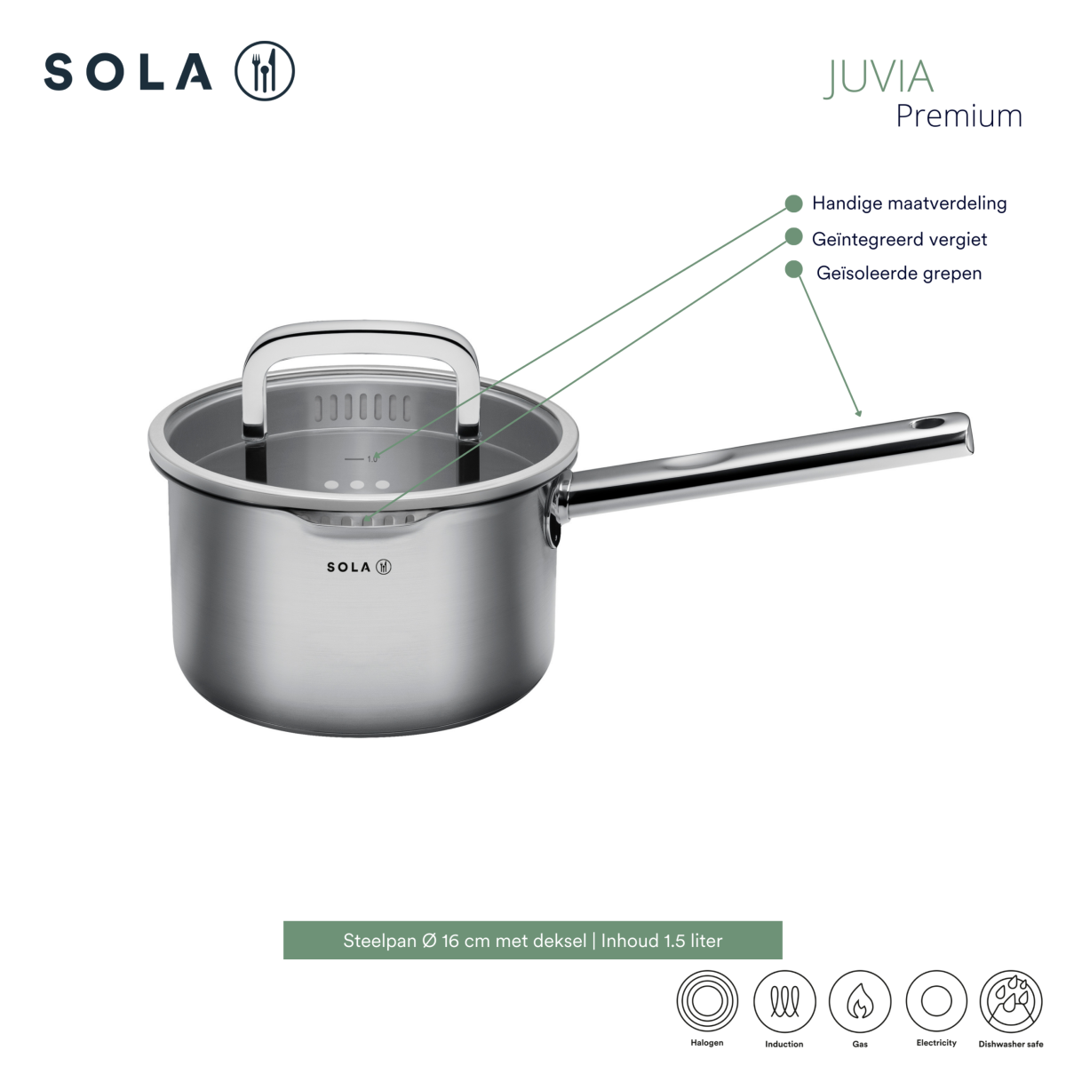 Sola is een vertrouwd Nederlands merk met meer dan 100 jaar ervaring in het vervaardigen van degelijke keukenproducten. We staan voor betrouwbaarheid en praktische kwaliteit. Met Sola kiest u voor functioneel ontworpen pannen en bestek met een uitstekende prijs-kwaliteitverhouding, gemaakt voor dagelijks gebruik in uw keuken.