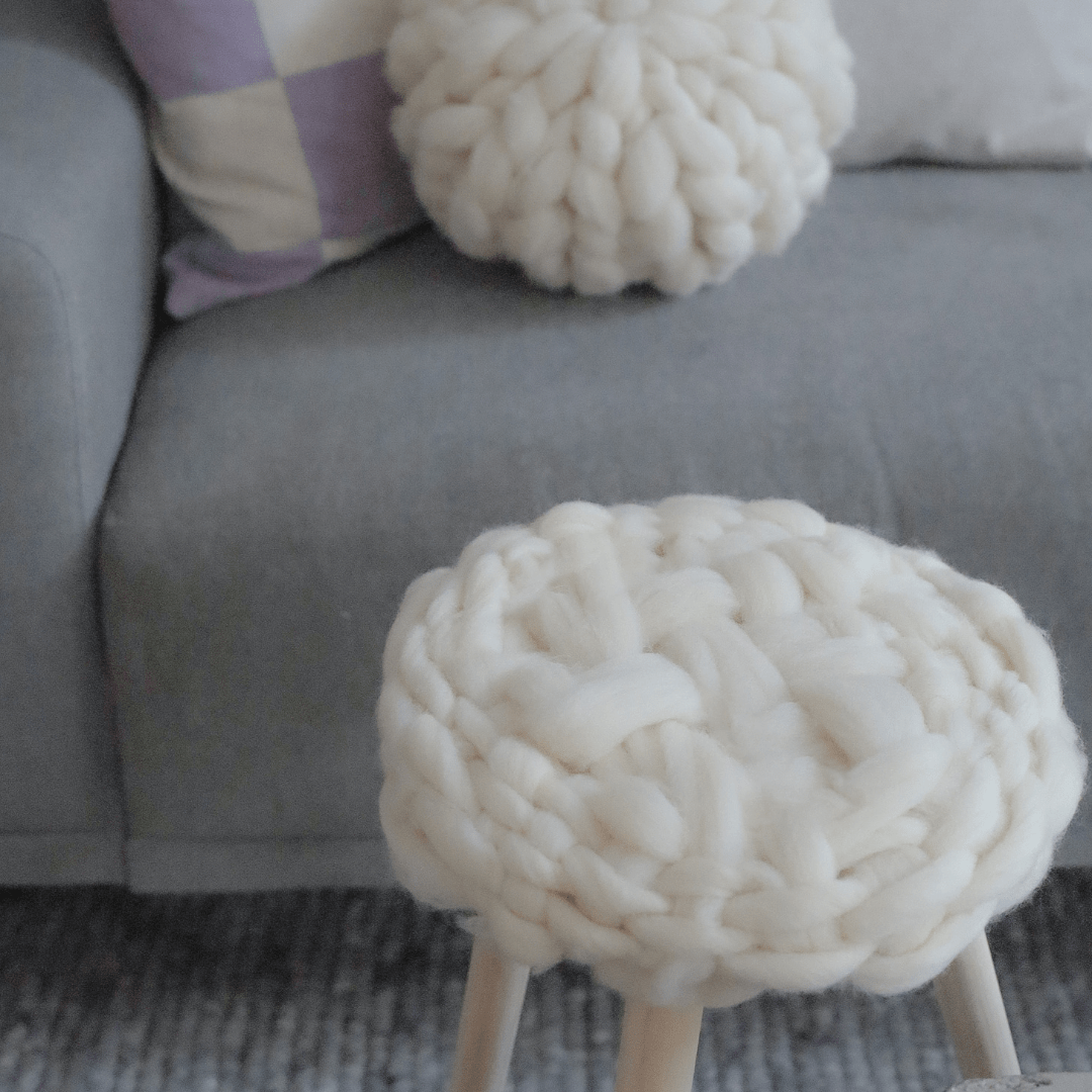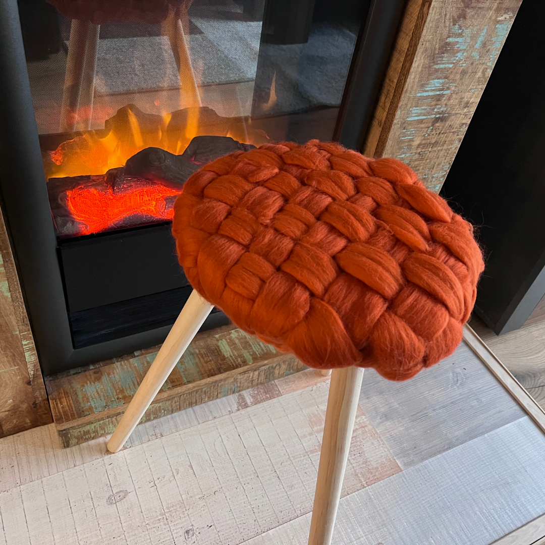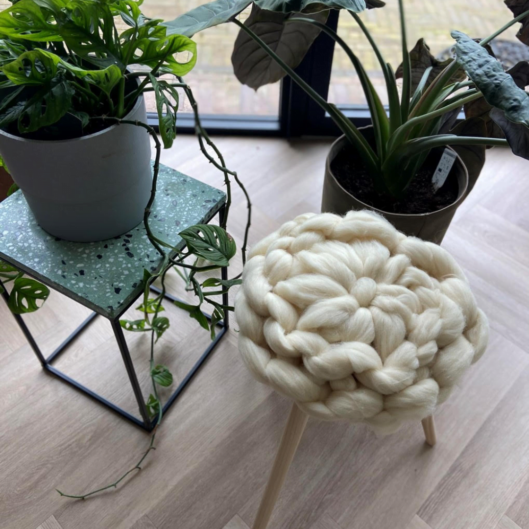 We eindigen dit jaar met dit super leuke krukje met een lontwol kussentje erop. We gaan weven! En dat is weer heel anders dan breien, haken en macrameeen. Maar supergoed te doen, ook voor beginners. Ben je gevorderde wever, dan vind je het werken met meerdere kleuren waarschijnlijk heel leuk!