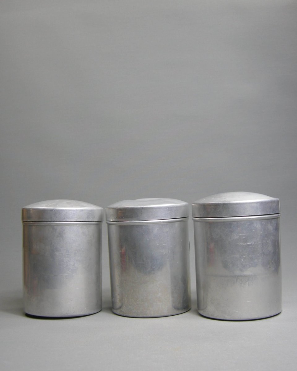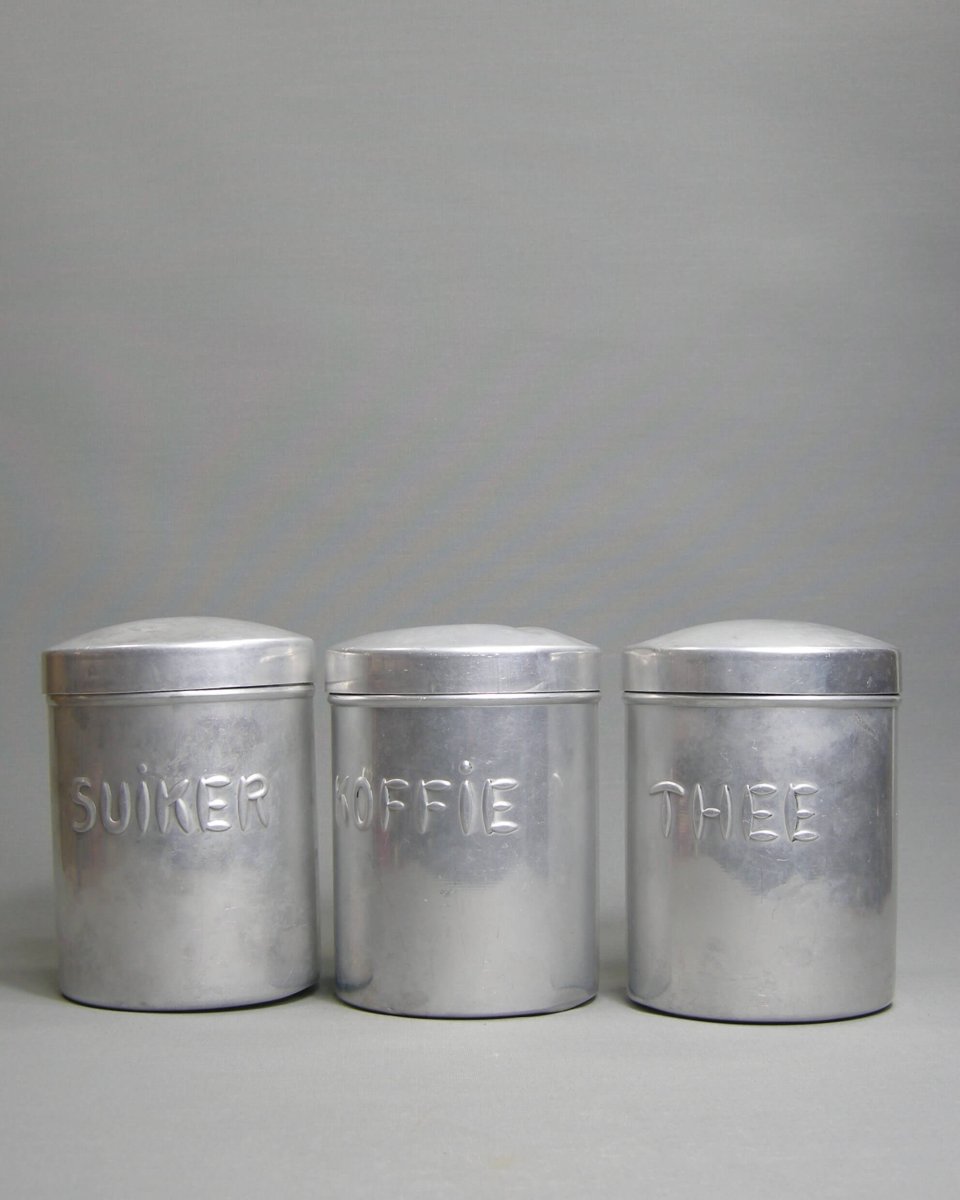 Vintage aluminium Koffie, Thee en Suiker blikken