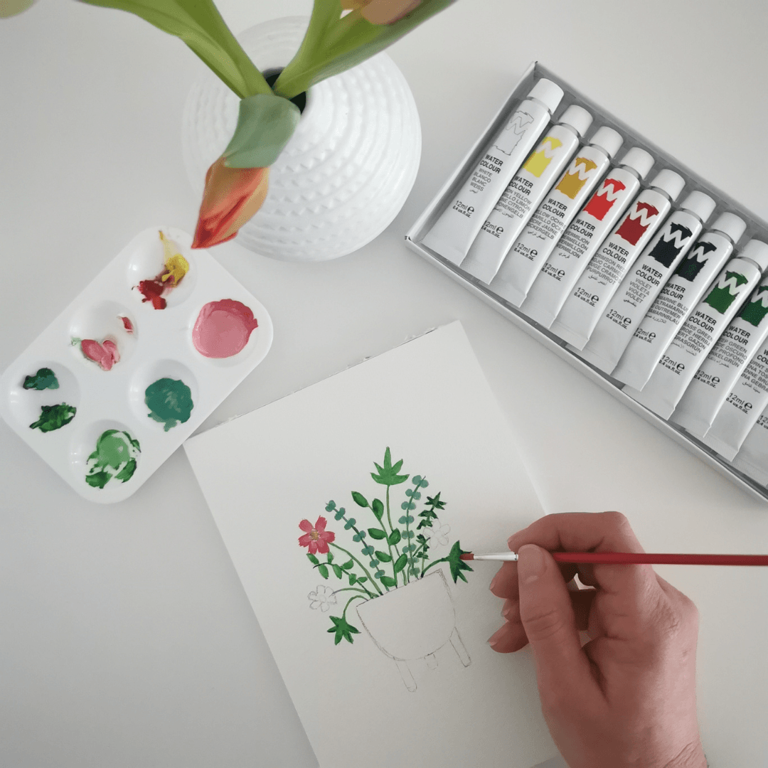 Smaakt dit naar meer? Kies dan voor het complete DIY Aqaurel pakket. Hiermee heb je alles in huis om te gaan schilderen. Je ontvangt 12 prachtige kleuren aquarel verf, met de primaire kleuren rood, geel en blauw, aangevuld met 9 secundaire kleuren. Deze kleuren kun je onderling ook nog mengen, op het handige mengpaneel wat erbij zit. Je krijgt drie verschillende maten kwasten en een stapel dik aquarel papier.