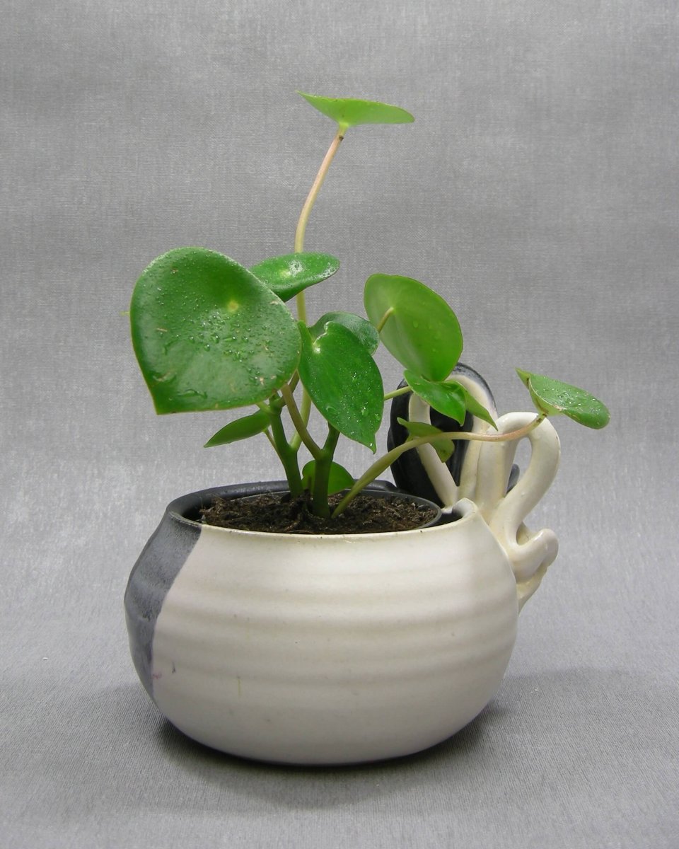Vintage bloempot met strik gesigneerd