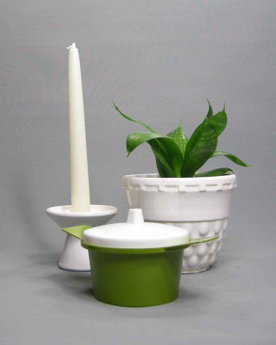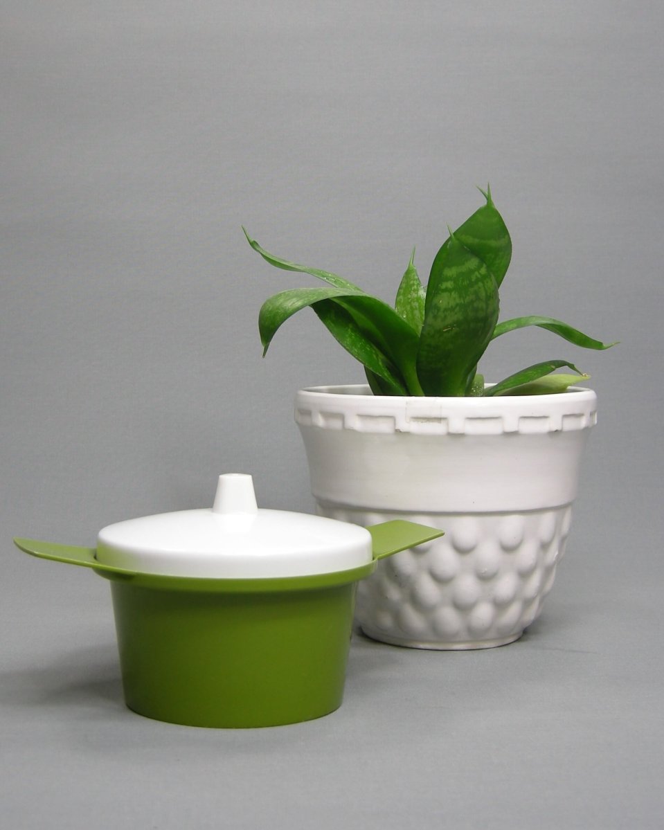 Vintage bloempot op stokjes gebakken
