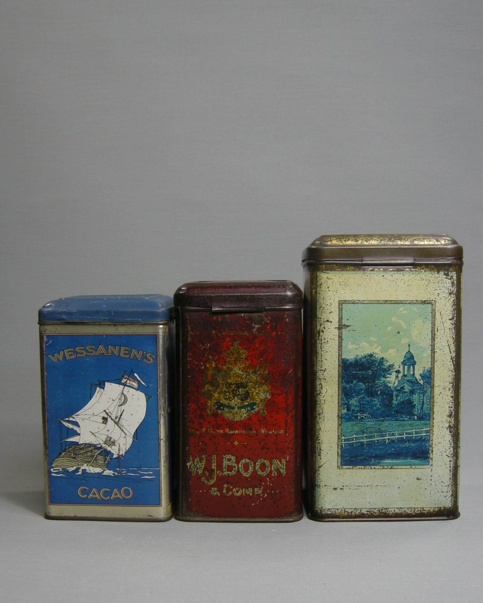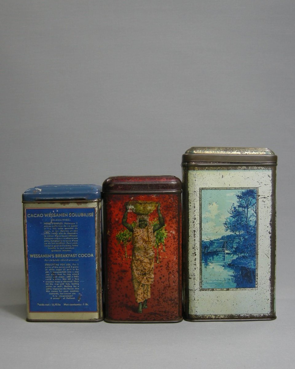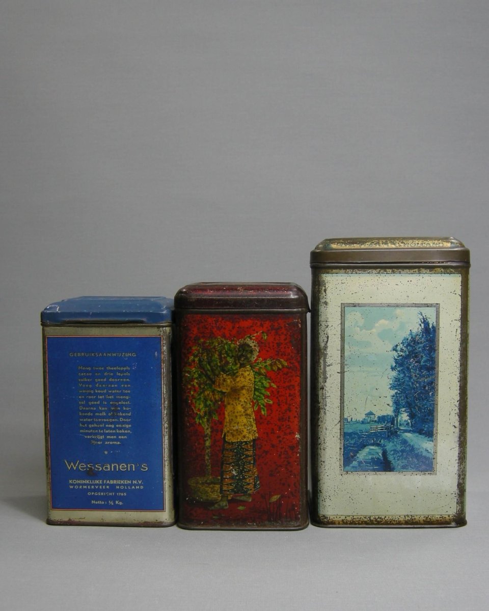 Vintage Cacaoblikken uit de Zaanstreek
