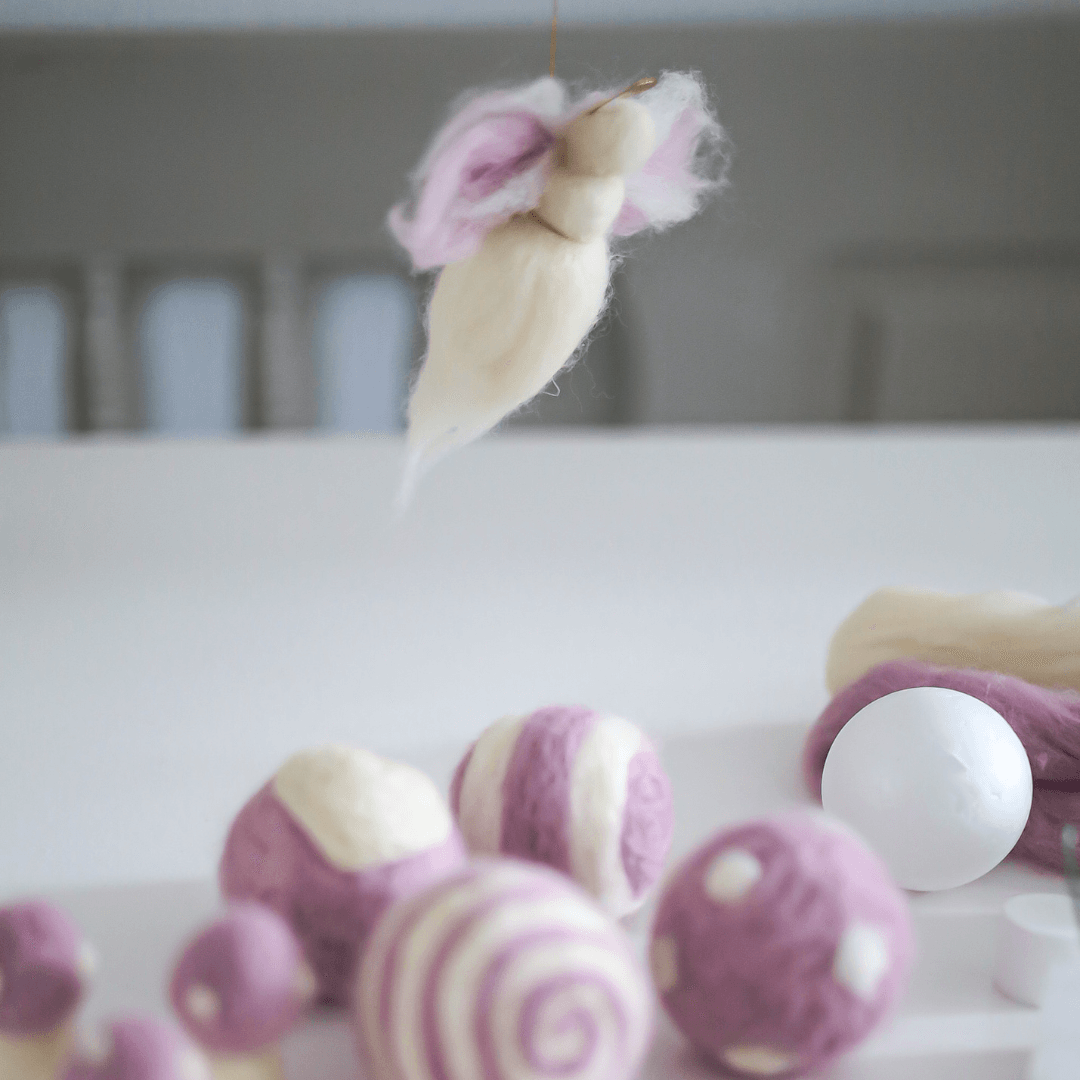 Inhoud: 4 sets wol, foam blok voor naaldvilten, viltnaalden, polystyreen en touw.