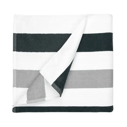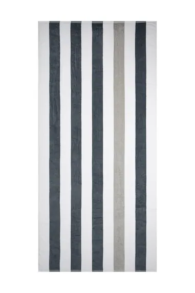 Kom in zomerse sferen met het gestreepte strandlaken van 90 x 190 cm. Het jacquard geweven strandlaken zorgt voor een uniek ingeweven design in twee kleuren. Er zijn vier strepen in antraciet en één streep in lichtgrijs.