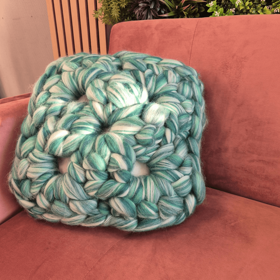 Handgemaakt: Dit kussen is handgemaakt – euh gehaakt – door onze ambassadeur Mike van Mikes Creatieve Wereld!