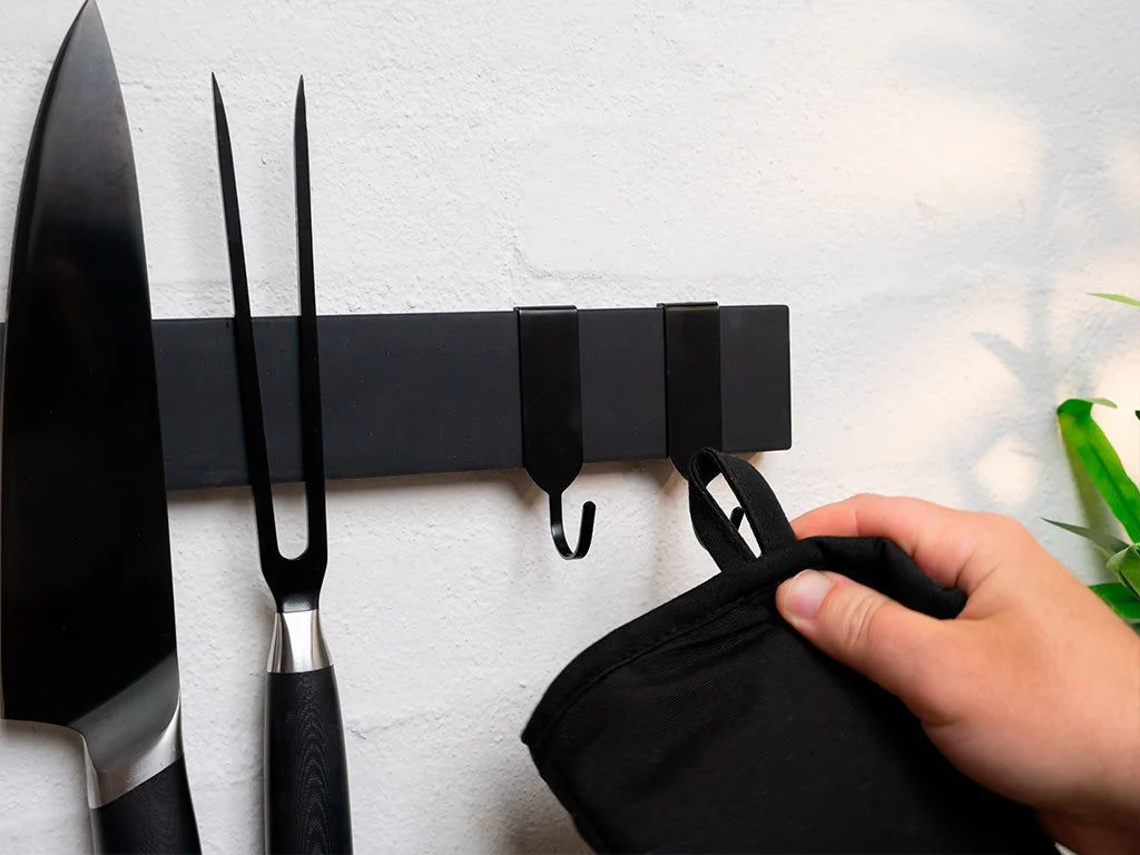 Als je meer keukenspullen kwijt wil of als je je keukengerei gewoonweg altijd bij de hand wilt hebben, zijn de ONYX COOKWARE™ HAKEN met de MAGNEETBEVESTIGING de perfecte oplossing.