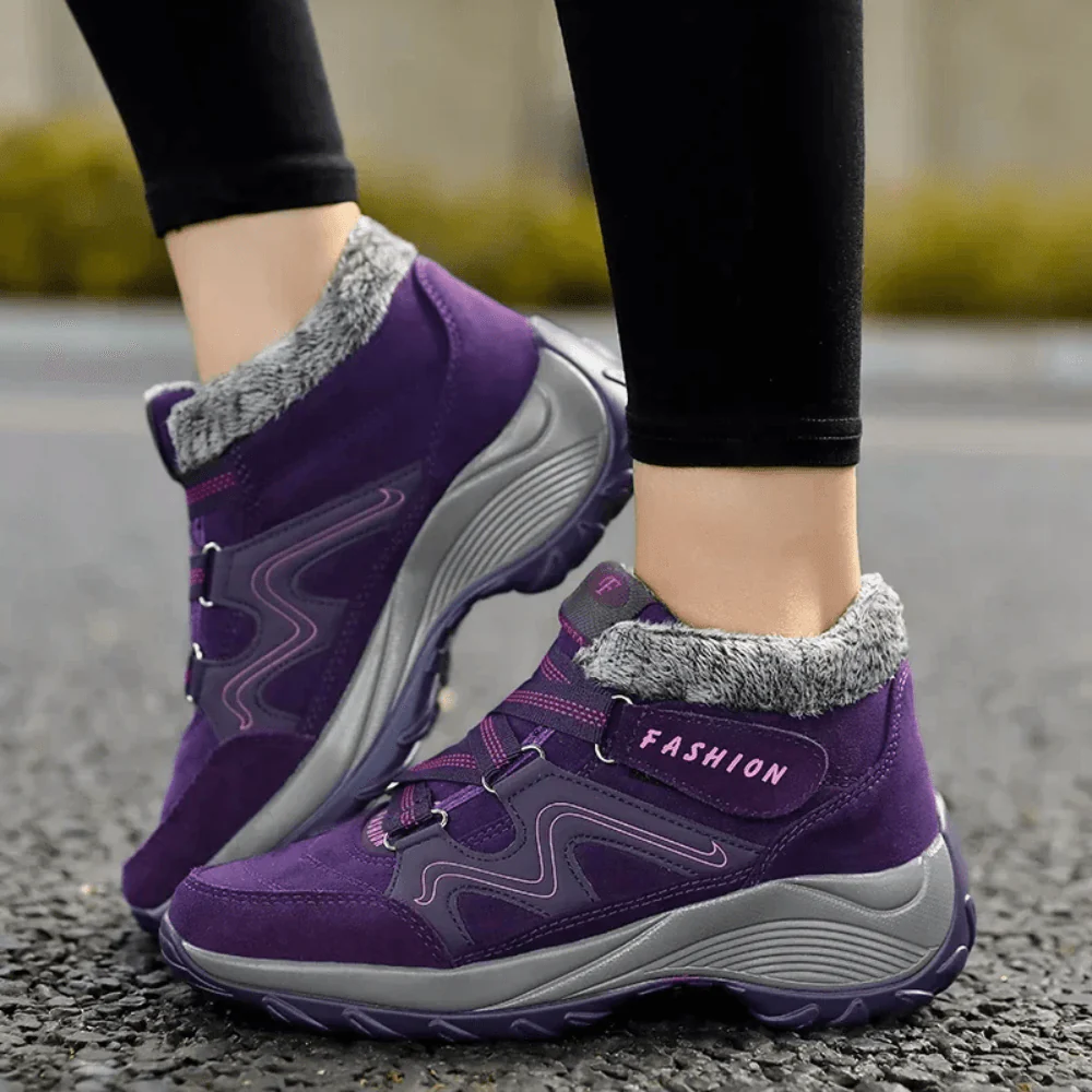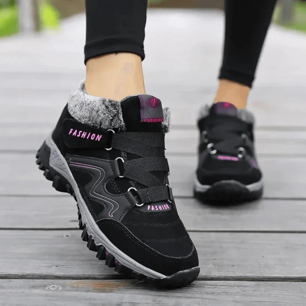 Waarom zou je kiezen tussen stijl en comfort? Deze schoenen combineren beide moeiteloos. Het zachte pluche binnenwerk omhult je voeten in warmte, terwijl de dempende orthopedische zool je maximale ondersteuning biedt. Zelfs zonder sokken voelen je voeten zacht en comfortabel.