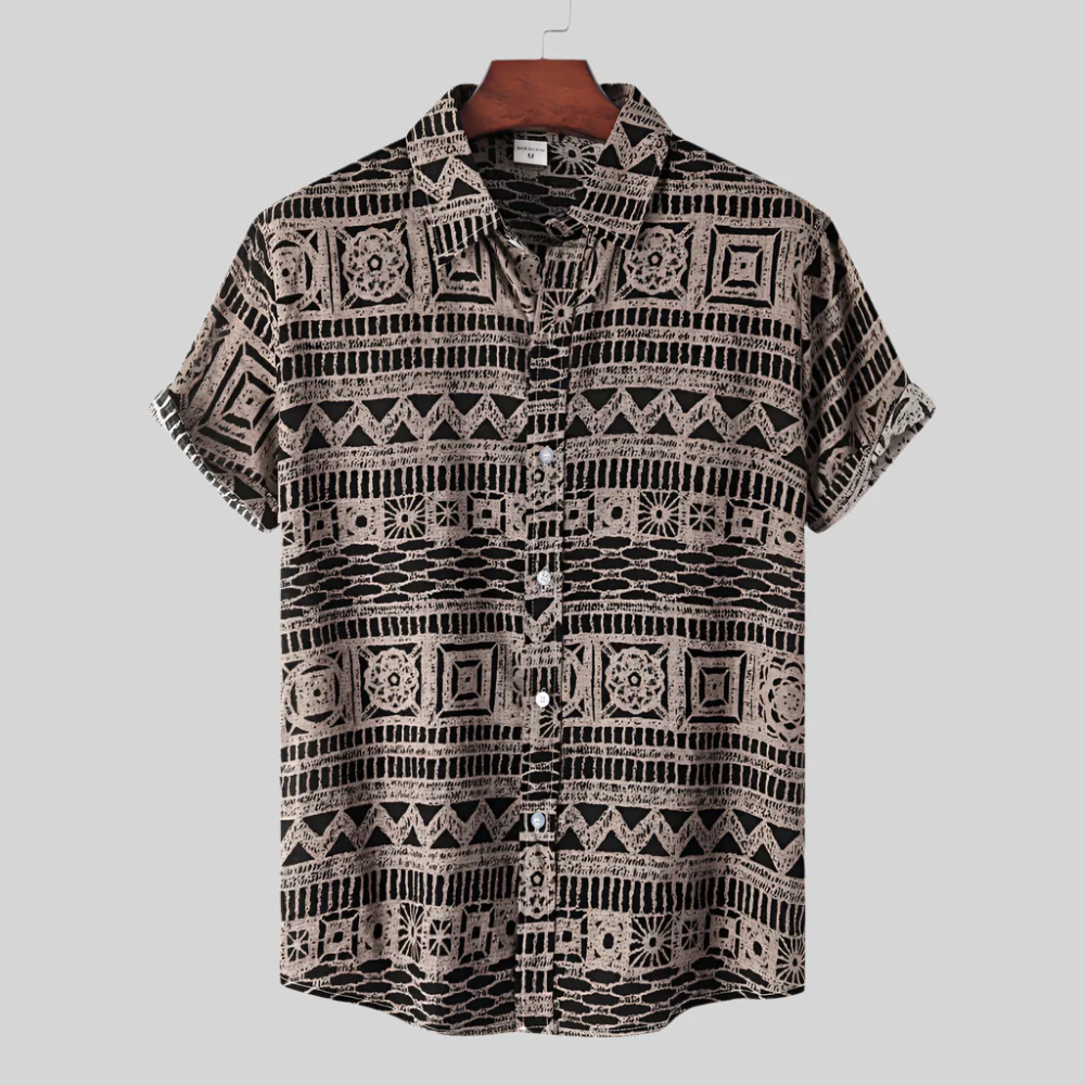 - Design: Tribaal patroon, korte mouwen, polokraag