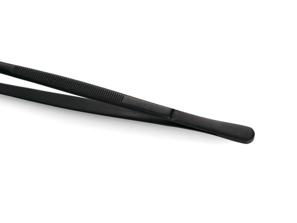 De uiteinden van de tang zijn voorzien van scherpere, kleinere ribbels aan beide kanten. Dit maakt het ontwerp van de ONYX COOKWARE™ KEUKENTANG optimaal om zelfs het meest delicate, luxe of gladde voedsel op te pakken, vast te houden en om te draaien.