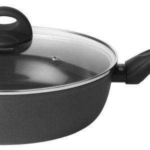 Deze kookpan is ontworpen voor optimaal gebruiksgemak. De meegeleverde glazen deksel maakt het eenvoudig om het kookproces in de gaten te houden zonder warmte te verliezen. Dankzij het handige afgietsysteem giet u vloeistoffen veilig en gecontroleerd af. De siliconen pads bieden extra comfort tijdens het hanteren van de pan.