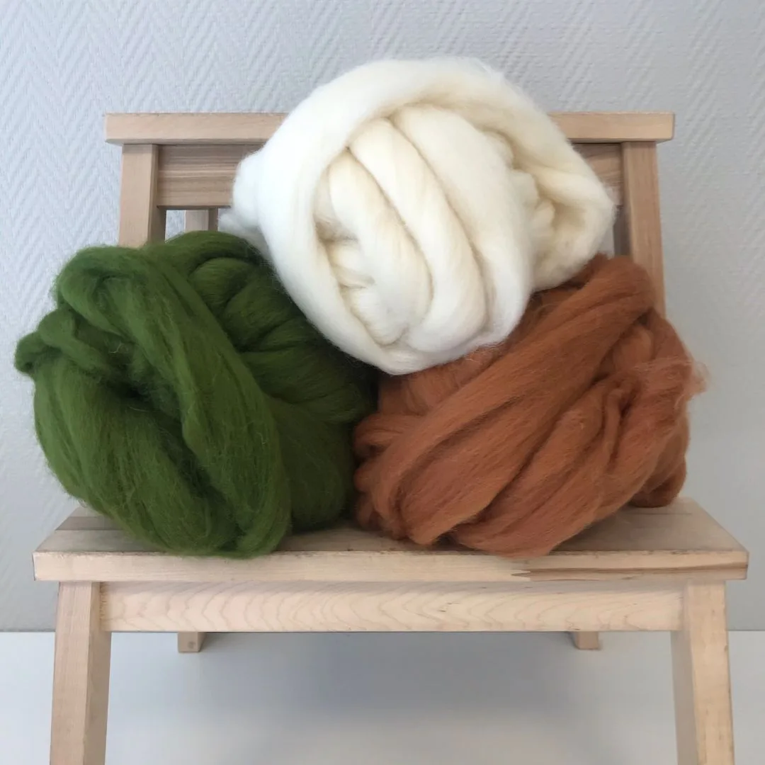 - Geschikt voor: Bedsprei , Droog vilten , Nat vilten, Nuno vilten , Vilten, Woondeken, Woondeken XXL, XXL breien, Spinnen, Haken, Weven, Macramé. Op de foto’s zie je de verschillende toepassingen met onze natuurlijke en gekleurde wol.