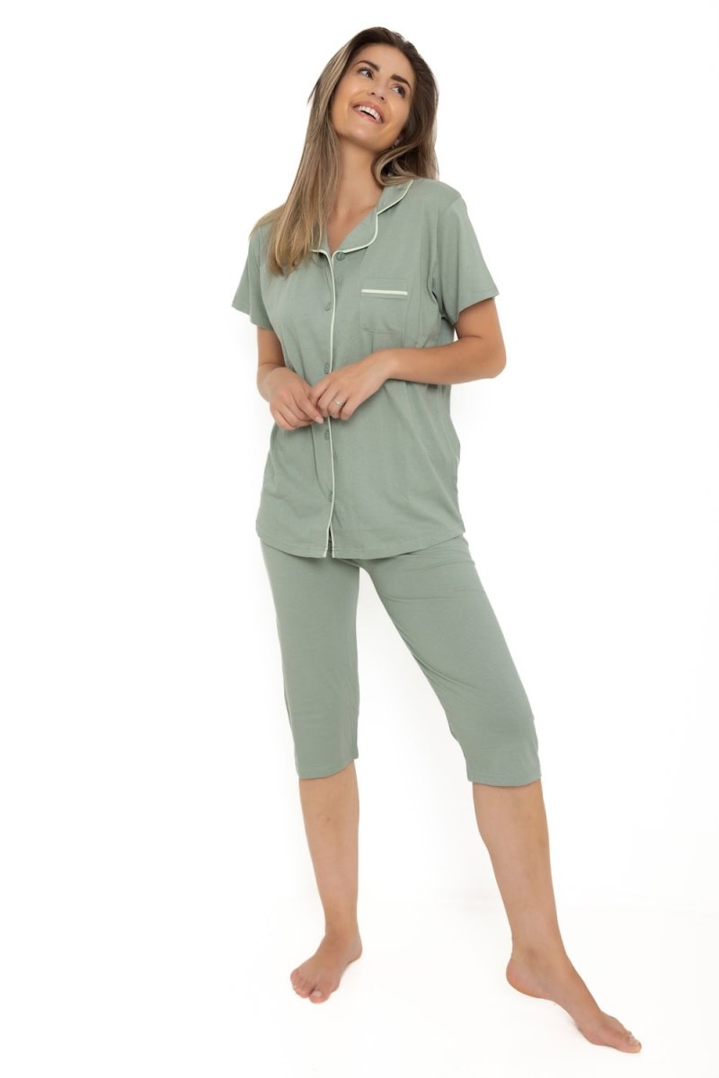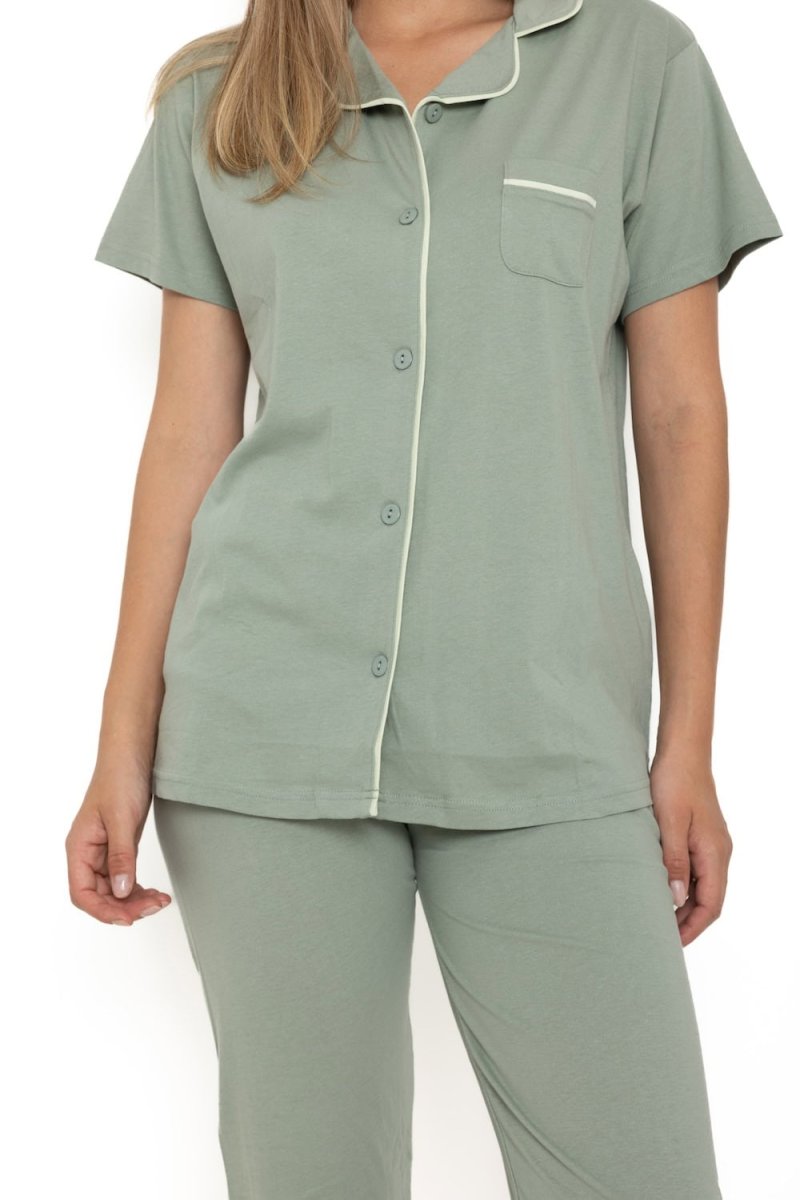 Kies voor klassieke elegantie met deze soepele doorknoop-pyjama uit onze Cocodream collectie. Dit comfortabele model is verfijnd afgewerkt met een chique witte bies, een subtiel borstzakje en een mooie kraag. Of je nu ontwaakt in het weekend of je klaarmaakt voor de nacht, de hemelszachte stof en losjes vallende pasvorm zorgen gegarandeerd voor totale ontspanning.