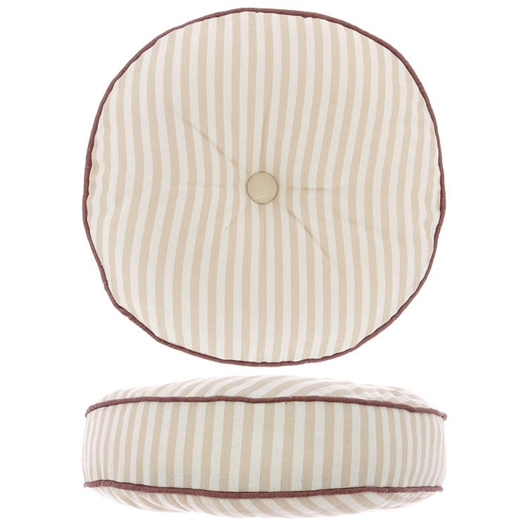 Dit charmante ronde Sandro kussen van Unique Living brengt direct een speelse en sfeervolle uitstraling in je interieur. Dankzij het tijdloze streeppatroon en de subtiele afwerking met een klassieke capiton-knoop in het midden past dit kussen perfect op een bank of fauteuil. Met een diameter van 45cm en een licht, plat ontwerp is het een ideale decoratieve toevoeging die moeiteloos verschillende woonstijlen combineert voor een extra vleugje gezelligheid in huis.