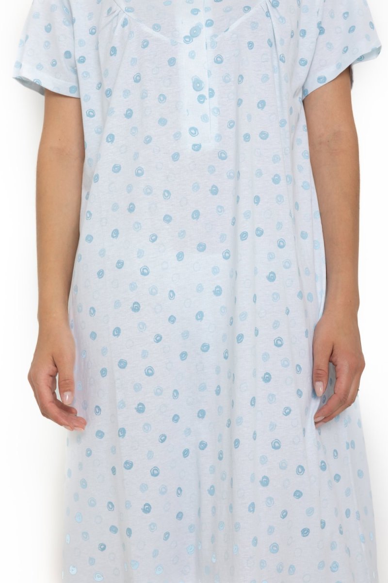Dit comfortabele slaapkleed van het merk Cocodream biedt de ideale combinatie van stijl en gemak voor een goede nachtrust. Het ontwerp is voorzien van een klassieke ronde halslijn en een praktische knoopsluiting aan de voorzijde, wat het aan- en uitkleden vergemakkelijkt. Dankzij de korte mouwen en de luchtige pasvorm geniet je van optimale bewegingsvrijheid tijdens het slapen of ontspannen in huis. Het subtiele patroon over het gehele kledingstuk geeft het een verfijnde uitstraling, terwijl de zachte stof zorgt voor een aangenaam gevoel op de huid.