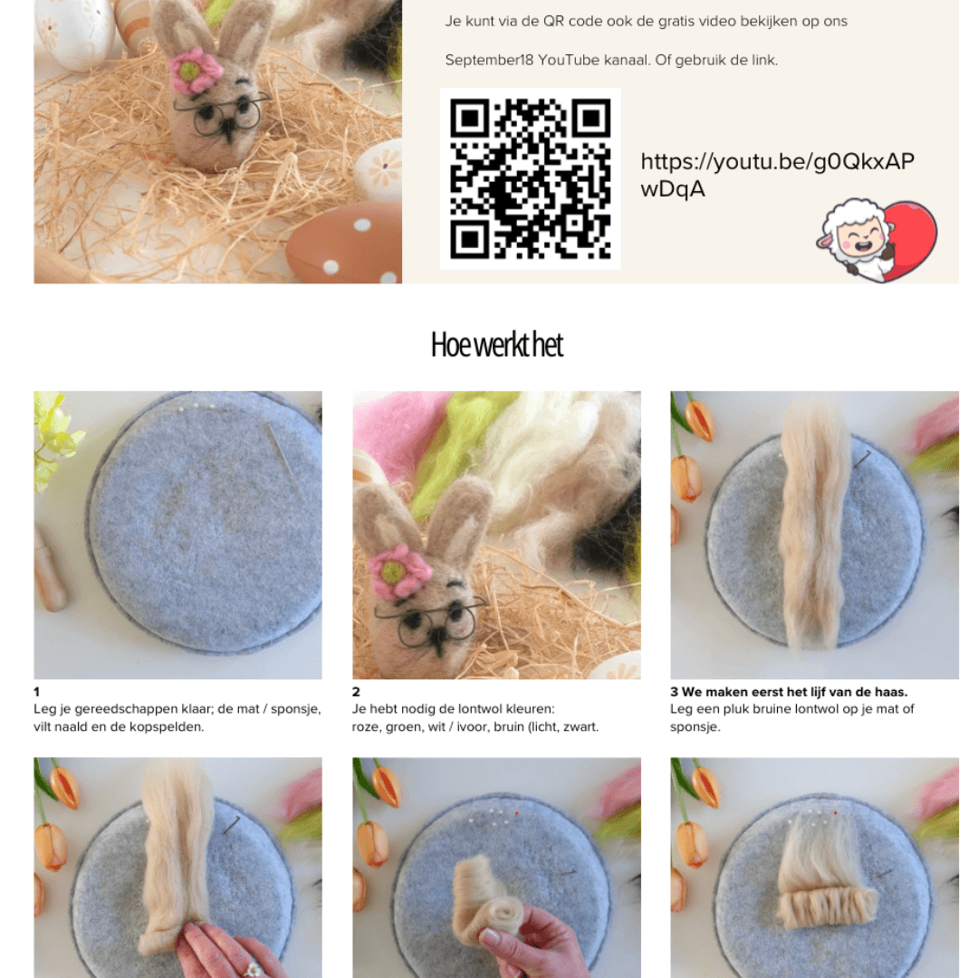 Bij prik vilten gebruik je een speciale prik naald, die ook in dit pakketje zit. Deze naald zorgt ervoor dat de lontwol vezels met elkaar verbonden worden. De naald heeft speciale weerhaakjes. Door bijvoorbeeld op een sponsje te prikken of een vilt borstel, kun je door de beweging op en neer door de losse wol vezels aan elkaar prikken.